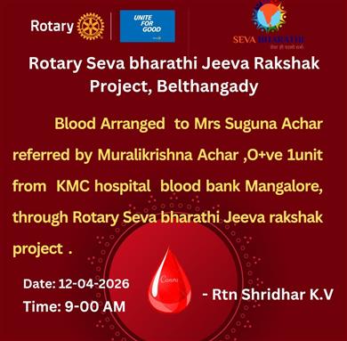 Rotary Seva Bharati Jeev Raksha project, Belthangady arranged 1 uni. . .