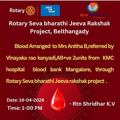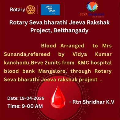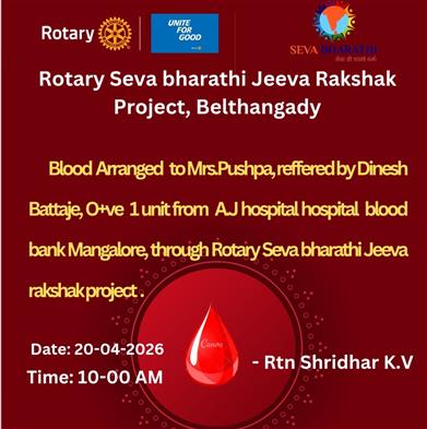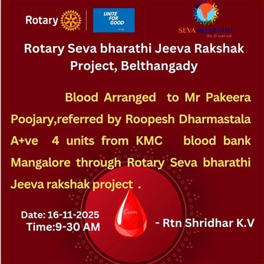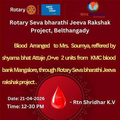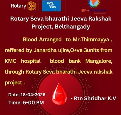 The Rotary Seva Jeeva Raksha Project supplied 4 units of A+ blood t. . .
